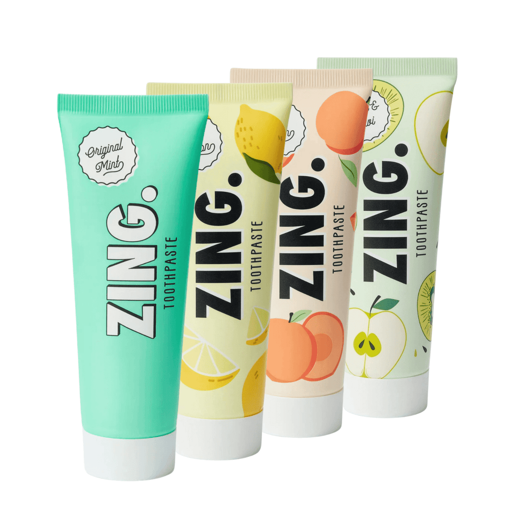 ZING zobu pasta, pateicoties sastāvā esošajam papaīnam, ātri noņem kafijas, tējas vai citu pigmentu traipus, tādējādi atjaunojot zobu dabisko spīdumu. Tāpat pastā esošais spēcīgais hikoroksiapatīta un fluora savienojums aizsargā pret kariesa veidošanos, remineralizē zobu virsmu un samazina zobu jutīgumu.